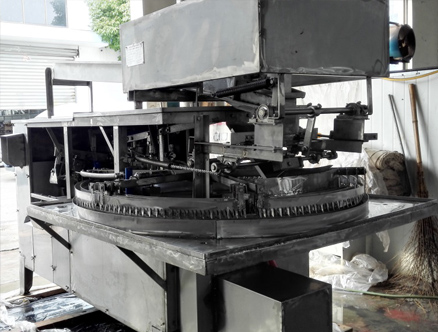 该设备自动完成面筋的进料、下料、调理、切割、缠绕、退筷、输送等程序,实现了从进料到产品真正意义上的全自动化生产过程。大幅度减少操作工人,提高生产效率和降低人工成本。且面筋卷生产为仿手工缠绕制作,全过程无挤压、不使用磨具,产品完全保留了手工面筋卷的外形和口感。设备管理简单、运行稳定、无故障,可24小时连续生产。